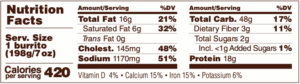 Ingredients: Scrambled eggs, Shredded potatoes, Cherry tomato salsa, Bacon, Cheddar cheese, Green chile, Jalapeno peppers CONTAINS: EGG, MILK, SOY, WHEAT